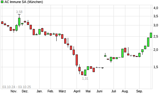 Mit dem Anstieg auf 2,65 EUR hat die AC Immune SA-Aktie (ISIN CH0329023102) am 02.10.2025 ein neues 6-Monats-Hoch erreicht und damit den Kurs vom 01.10.2025 eingestellt.Die AC Immune SA-Aktie ...weiterlesen