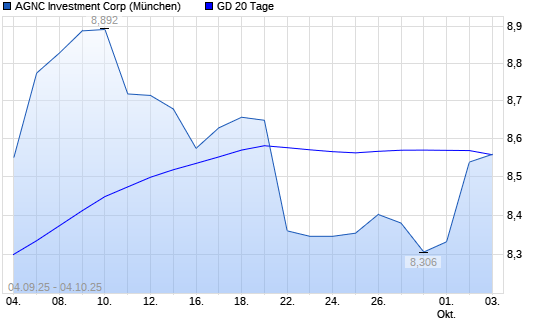 Mit dem Anstieg auf 8,51 EUR hat die AGNC INV.-Aktie am 03.10.2025 die 20-Tage-Linie nach oben gekreuzt.Die AGNC INV.-Aktie befindet sich seit dem 18.09.2025 im langfristigen Abwärtstrend und ...weiterlesen