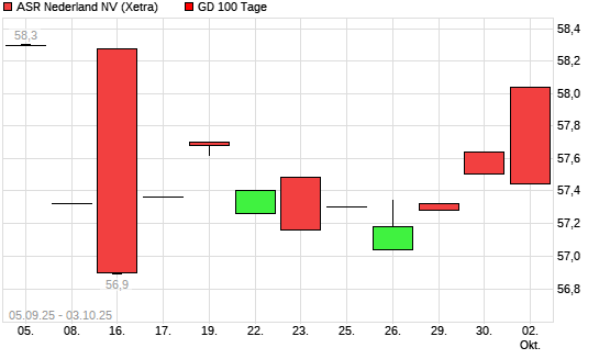 Mit dem Rücksetzer auf 57,18 EUR hat die ASR Nederland-Aktie am 02.10.2025 die 100-Tage-Linie nach unten gekreuzt.Die ASR Nederland-Aktie befindet sich seit dem 30.12.2024 im langfristigen ...weiterlesen