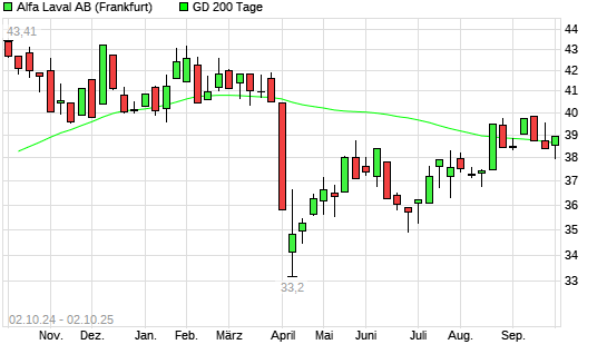 Mit dem Anstieg auf 38,89 EUR hat die Alfa Laval-Aktie am 01.10.2025 die 200-Tage-Linie nach oben gekreuzt.Die Alfa Laval-Aktie befand sich seit dem 26.09.2025 im langfristigen Abwärtstrend ...weiterlesen