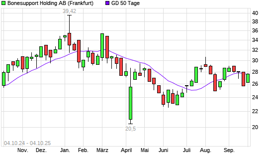 Mit dem Anstieg auf 27,64 EUR hat die Bonesupport Holding-Aktie am 03.10.2025 die 50-Tage-Linie nach oben gekreuzt.Die Bonesupport Holding-Aktie befindet sich seit dem 09.09.2025 im langfristigen ...weiterlesen