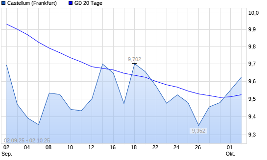 Mit dem Anstieg auf 9,55 EUR hat die Castellum-Aktie am 01.10.2025 die 20-Tage-Linie nach oben gekreuzt.Die Castellum-Aktie befindet sich seit dem 08.07.2025 im langfristigen Abwärtstrend und ...weiterlesen