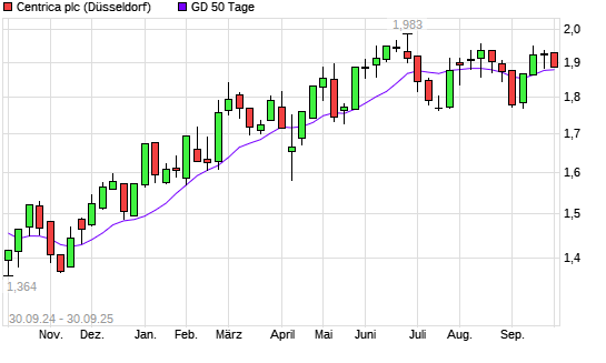 Mit dem Anstieg auf 1,90 EUR hat die Centrica-Aktie am 29.09.2025 die 50-Tage-Linie nach oben gekreuzt.Die Centrica-Aktie befindet sich seit dem 27.12.2024 im langfristigen Aufwärtstrend und ...weiterlesen