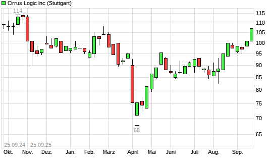 Mit dem Anstieg auf 108,00 EUR hat die Cirrus Logic-Aktie (ISIN US1727551004) am 24.09.2025 ein neues 6-Monats-Hoch erreicht und damit den Kurs vom 23.09.2025 eingestellt.Die Cirrus Logic-Aktie ...weiterlesen