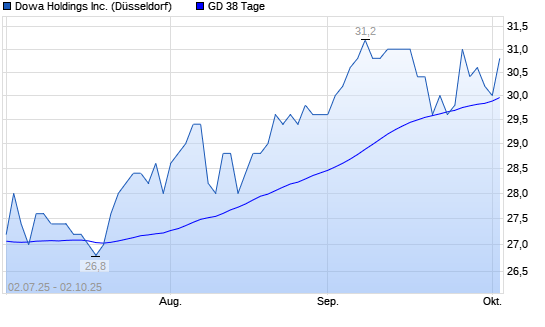 Mit dem Rücksetzer auf 30,00 EUR hat die Dowa Holdings-Aktie am 01.10.2025 die 38-Tage-Linie nach unten gekreuzt.Die Dowa Holdings-Aktie befindet sich seit dem 23.07.2025 im langfristigen ...weiterlesen