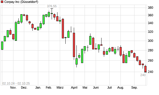 Mit dem Rücksetzer auf 242,00 EUR hat die Fleetcor Technologies-Aktie (ISIN US2199481068) am 01.10.2025 ein neues 12-Monats-Tief erreicht und damit den Kurs vom 26.09.2025 eingestellt.Die ...weiterlesen