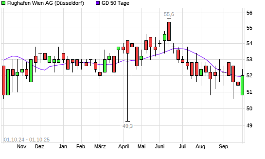 Mit dem Anstieg auf 52,60 EUR hat die Flughafen Wien-Aktie am 30.09.2025 die 50-Tage-Linie nach oben gekreuzt.Die Flughafen Wien-Aktie befindet sich seit dem 24.07.2025 im langfristigen Abwärtstrend ...weiterlesen