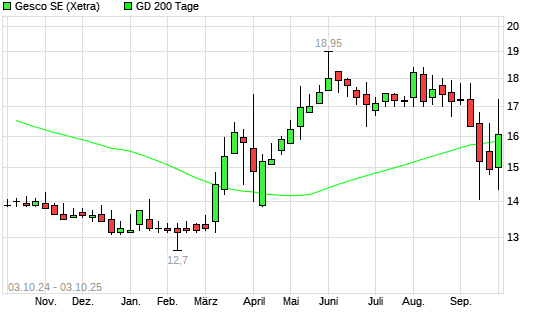 Mit dem Anstieg auf 16,45 EUR hat die Gesco-Aktie am 02.10.2025 die 200-Tage-Linie nach oben gekreuzt.Die Gesco-Aktie befand sich seit dem 15.09.2025 im langfristigen Abwärtstrend und hat in ...weiterlesen