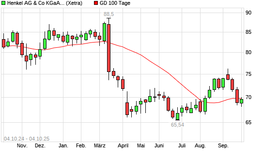 Mit dem Anstieg auf 69,86 EUR hat die Henkel Vz-Aktie am 03.10.2025 die 100-Tage-Linie nach oben gekreuzt.Die Henkel Vz-Aktie befindet sich seit dem 10.09.2025 im langfristigen Abwärtstrend ...weiterlesen