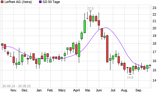 Mit dem Anstieg auf 15,50 EUR hat die Leifheit-Aktie am 29.09.2025 die 50-Tage-Linie nach oben gekreuzt.Die Leifheit-Aktie befindet sich seit dem 19.06.2025 im langfristigen Abwärtstrend und ...weiterlesen
