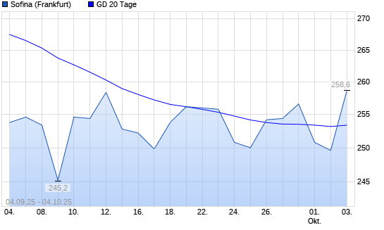 Mit dem Anstieg auf 258,60 EUR hat die Sofina-Aktie am 03.10.2025 die 20-Tage-Linie nach oben gekreuzt.Die Sofina-Aktie befindet sich seit dem 10.04.2025 im langfristigen Aufwärtstrend und hat ...weiterlesen