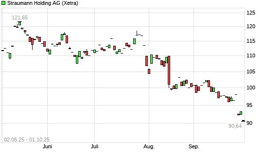 Mit dem Rücksetzer auf 88,86 EUR hat die Straumann-Aktie (ISIN CH1175448666) am 30.09.2025 ein neues 3-Jahres-Tief erreicht und damit den Kurs vom 26.09.2025 eingestellt.Die Straumann-Aktie ...weiterlesen