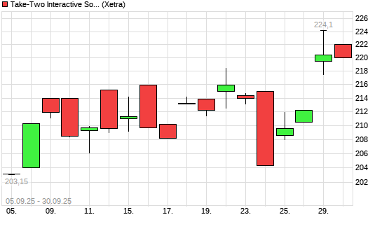 Mit dem Anstieg auf 221,60 EUR hat die Take 2 Interactive-Aktie (ISIN US8740541094) am 29.09.2025 ein neues All-Time-High erreicht und damit den Kurs vom 26.09.2025 eingestellt.Die Take 2 Interactive-Aktie ...weiterlesen