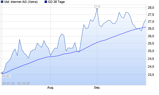 Mit dem Anstieg auf 27,44 EUR hat die United Internet-Aktie am 01.10.2025 die 38-Tage-Linie nach oben gekreuzt.Die United Internet-Aktie befindet sich seit dem 11.04.2025 im langfristigen Aufwärtstrend ...weiterlesen