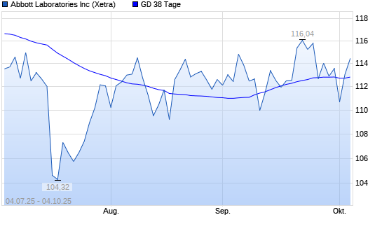 Mit dem Rücksetzer auf 112,86 EUR hat die Abbott Laboratories-Aktie am 03.10.2025 die 38-Tage-Linie nach unten gekreuzt.Die Abbott Laboratories-Aktie befindet sich seit dem 23.09.2025 im ...weiterlesen