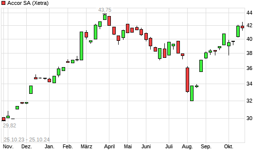 Mit dem Anstieg auf 42,68 EUR hat die Accor-Aktie (ISIN FR0000120404) am 24.10.2024 ein neues 6-Monats-Hoch erreicht und damit den Kurs vom 29.04.2024 eingestellt.Die Accor-Aktie befindet sich ...weiterlesen