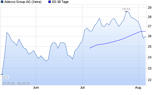 Mit dem Rücksetzer auf 26,08 EUR hat die Adecco-Aktie am 06.08.2025 die 38-Tage-Linie nach unten gekreuzt.Die Adecco-Aktie befindet sich seit dem 02.07.2025 im langfristigen Aufwärtstrend ...weiterlesen