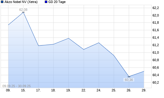 Mit dem Rücksetzer auf 60,64 EUR hat die Akzo Nobel-Aktie am 29.09.2025 die 20-Tage-Linie nach unten gekreuzt.Die Akzo Nobel-Aktie befindet sich seit dem 20.08.2025 im langfristigen Aufwärtstrend ...weiterlesen