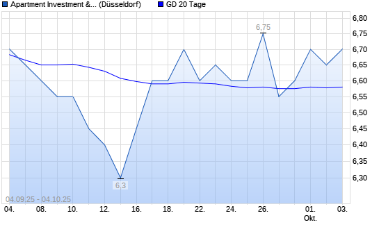 Mit dem Anstieg auf 6,60 EUR hat die Apartment Investment Management-Aktie am 03.10.2025 die 20-Tage-Linie nach oben gekreuzt.Die Apartment Investment Management-Aktie befindet sich seit dem ...weiterlesen