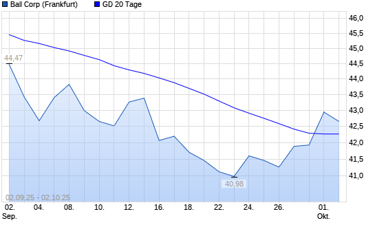 Mit dem Anstieg auf 42,95 EUR hat die Ball-Aktie am 01.10.2025 die 20-Tage-Linie nach oben gekreuzt.Die Ball-Aktie befindet sich seit dem 01.08.2025 im langfristigen Abwärtstrend und hat in ...weiterlesen