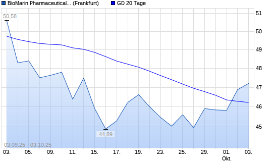 Mit dem Anstieg auf 46,88 EUR hat die BioMarin Pharmaceutical-Aktie am 02.10.2025 die 20-Tage-Linie nach oben gekreuzt.Die BioMarin Pharmaceutical-Aktie befindet sich seit dem 06.09.2024 im ...weiterlesen