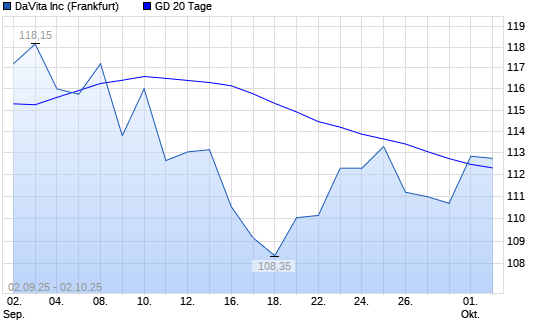 Mit dem Anstieg auf 112,85 EUR hat die DaVita-Aktie am 01.10.2025 die 20-Tage-Linie nach oben gekreuzt.Die DaVita-Aktie befindet sich seit dem 20.02.2025 im langfristigen Abwärtstrend und hat ...weiterlesen