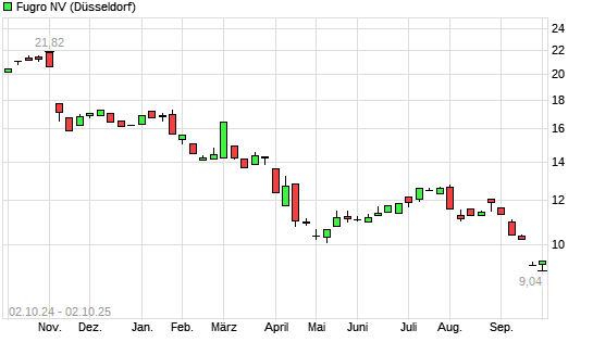 Mit dem Rücksetzer auf 9,07 EUR hat die Fugro-Aktie (ISIN NL00150003E1) am 01.10.2025 ein neues 3-Jahres-Tief erreicht und damit den Kurs vom 23.09.2025 eingestellt.Die Fugro-Aktie befindet ...weiterlesen