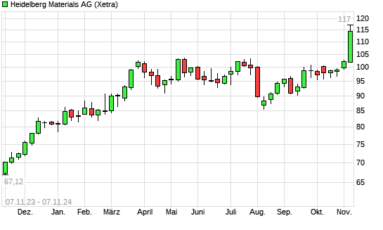 Mit dem Anstieg auf 108,25 EUR hat die Heidelberg Materials-Aktie (ISIN DE0006047004) am 06.11.2024 ein neues 10-Jahres-Hoch erreicht und damit den Kurs vom 05.11.2024 eingestellt.Die Heidelberg ...weiterlesen