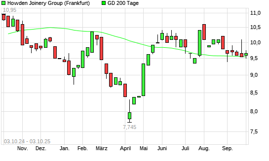 Mit dem Anstieg auf 9,75 EUR hat die Howden Joinery Group-Aktie am 02.10.2025 die 200-Tage-Linie nach oben gekreuzt.Die Howden Joinery Group-Aktie befand sich seit dem 01.10.2025 im langfristigen ...weiterlesen