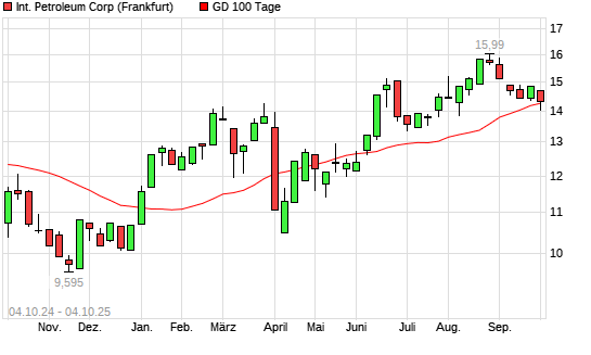 Mit dem Anstieg auf 14,32 EUR hat die International Petroleum-Aktie am 03.10.2025 die 100-Tage-Linie nach oben gekreuzt.Die International Petroleum-Aktie befindet sich seit dem 08.05.2025 im ...weiterlesen