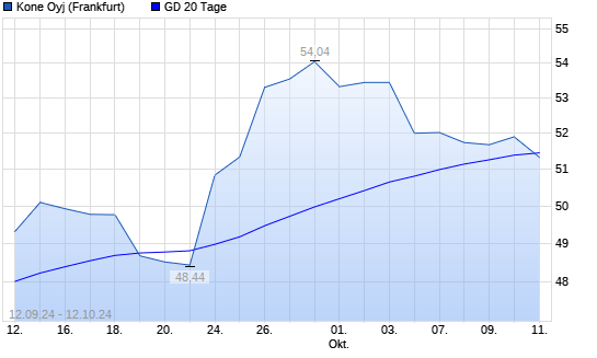 Mit dem Rücksetzer auf 51,34 EUR hat die Kone-Aktie am 11.10.2024 die 20-Tage-Linie nach unten gekreuzt.Die Kone-Aktie befindet sich seit dem 19.04.2024 im langfristigen Aufwärtstrend und ...weiterlesen