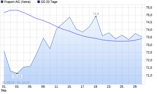 Mit dem Rücksetzer auf 73,05 EUR hat die Fraport-Aktie am 30.09.2025 die 20-Tage-Linie nach unten gekreuzt.Die Fraport-Aktie befindet sich seit dem 08.11.2024 im langfristigen Aufwärtstrend ...weiterlesen