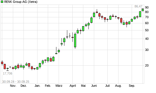 Mit dem Anstieg auf 85,80 EUR hat die RENK Group-Aktie (ISIN DE000RENK730) am 29.09.2025 ein neues All-Time-High erreicht und damit den Kurs vom 03.06.2025 eingestellt.Die RENK Group-Aktie befindet ...weiterlesen