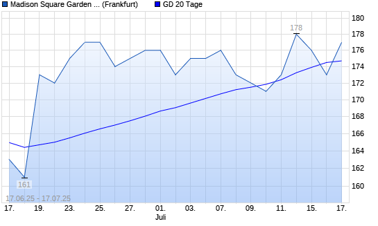 Mit dem Rücksetzer auf 173,00 EUR hat die Madison Square Garden Sports A-Aktie am 16.07.2025 die 20-Tage-Linie nach unten gekreuzt.Die Madison Square Garden Sports A-Aktie befindet sich ...weiterlesen