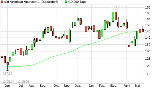 Mit dem Anstieg auf 146,85 EUR hat die Mid American Apartment-Aktie am 12.05.2025 die 200-Tage-Linie nach oben gekreuzt.Die Mid American Apartment-Aktie befand sich seit dem 06.05.2025 im langfristigen ...weiterlesen