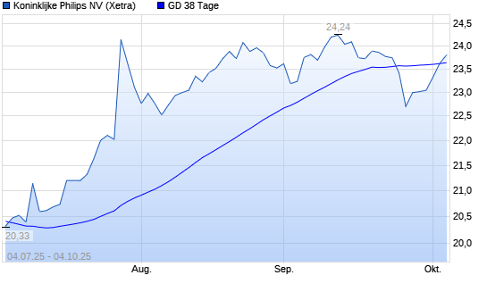 Mit dem Anstieg auf 23,72 EUR hat die Philips Electronics-Aktie am 03.10.2025 die 38-Tage-Linie nach oben gekreuzt.Die Philips Electronics-Aktie befindet sich seit dem 26.09.2025 im langfristigen ...weiterlesen