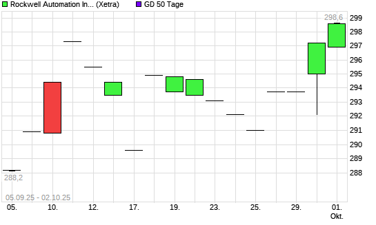 Mit dem Anstieg auf 294,60 EUR hat die Rockwell Automation-Aktie am 01.10.2025 die 50-Tage-Linie nach oben gekreuzt.Die Rockwell Automation-Aktie befindet sich seit dem 08.05.2025 im langfristigen ...weiterlesen