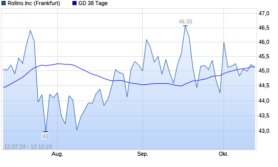 Mit dem Rücksetzer auf 45,10 EUR hat die Rollins-Aktie am 11.10.2024 die 38-Tage-Linie nach unten gekreuzt.Die Rollins-Aktie befindet sich seit dem 30.11.2023 im langfristigen Aufwärtstrend ...weiterlesen