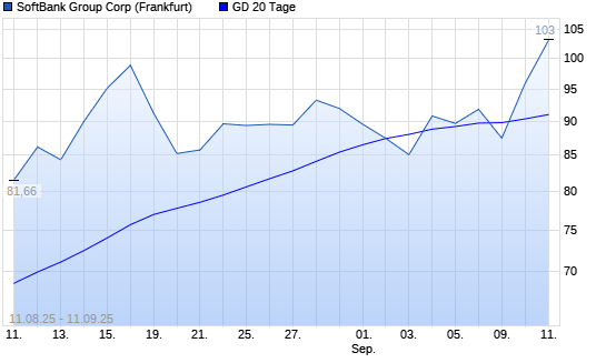 Mit dem Anstieg auf 95,88 EUR hat die Softbank Group-Aktie am 10.09.2025 die 20-Tage-Linie nach oben gekreuzt.Die Softbank Group-Aktie befindet sich seit dem 20.06.2025 im langfristigen Aufwärtstrend ...weiterlesen