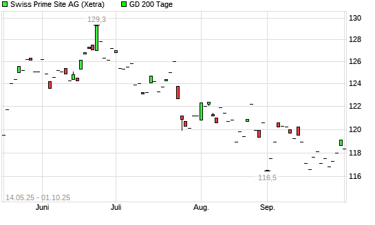 Mit dem Rücksetzer auf 117,10 EUR hat die Swiss Prime Site-Aktie am 02.10.2025 die 200-Tage-Linie nach unten gekreuzt.Die Swiss Prime Site-Aktie befand sich seit dem 30.09.2025 im langfristigen ...weiterlesen