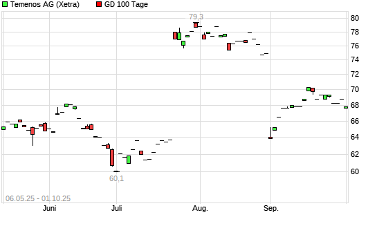 Mit dem Anstieg auf 68,65 EUR hat die Temenos Group-Aktie am 02.10.2025 die 100-Tage-Linie nach oben gekreuzt.Die Temenos Group-Aktie befindet sich seit dem 04.09.2025 im langfristigen Abwärtstrend ...weiterlesen