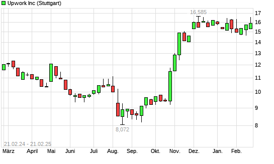 Mit dem Anstieg auf 16,65 EUR hat die Upwork-Aktie (ISIN US91688F1049) am 20.02.2025 ein neues 12-Monats-Hoch erreicht und damit den Kurs vom 05.12.2024 eingestellt.Die Upwork-Aktie befindet ...weiterlesen
