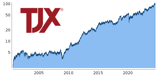 Während der globalen Finanzkrise von 2007 bis 2009, als die großen Industrienationen ihre schwersten Rezessionen seit der Großen Depression in den 1930er-Jahren durchlitten und Millionen von Menschen ihre Arbeitsplätze verloren, legten Umsatz und Gewinn von TJX Companies zu. In der jüngeren Vergangenheit gab es zwar im Corona-Jahr 2020 eine Delle durch Ladenschließungen, aber bereits 2021 hatte sich das Geschäft wieder mehr als erholt. Zur Freude der Aktionäre trug das Unternehmen definitiv eine Badehose: Innerhalb der vergangenen Dekade legte der Kurs im Mittel um 14,4% p.a. zu.