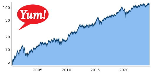 Aktie von Yum! Brands mit einer Gewinn-Konstanz von 92 Prozent und einer Verlust-Ratio von 1,7. Yum! Brands gehört ins Lager der defensiven, profitablen Unternehmen, die aufgrund starker Marken und eines breiten Burggrabens gut vor Angriffen der Konkurrenz geschützt sind. Yum! Brands ist der weltgrößte Betreiber von Systemgastronomie-Restaurants mit erfolgreichen Restaurantketten wie KFC, Pizza Hut und Taco Bell. Das in 155 Ländern tätige Unternehmen liefert konsequent starke finanzielle Ergebnisse. Die Kursentwicklung der Aktie (+11% p.a.) und die Dividendenrendite von rund zwei Prozent spiegeln diese Stärke wider.
