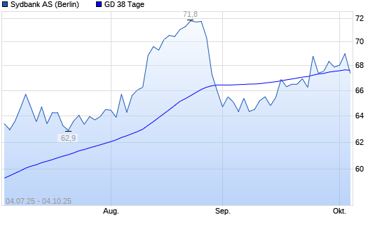Mit dem Rücksetzer auf 67,35 EUR hat die Sydbank-Aktie am 03.10.2025 die 38-Tage-Linie nach unten gekreuzt.Die Sydbank-Aktie befindet sich seit dem 09.04.2025 im langfristigen Aufwärtstrend ...weiterlesen