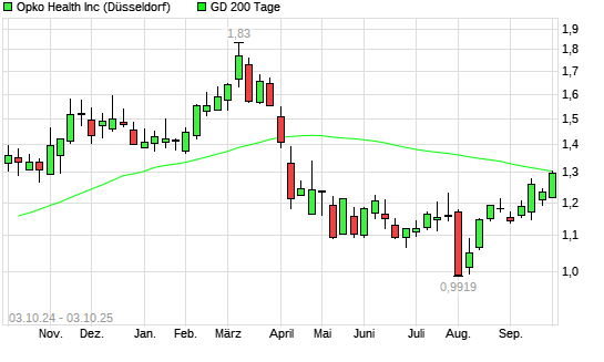 Mit dem Rücksetzer auf 1,26 EUR hat die Opko Health-Aktie am 02.10.2025 die 200-Tage-Linie nach unten gekreuzt.Die Opko Health-Aktie befand sich seit dem 01.10.2025 im langfristigen Aufwärtstrend ...weiterlesen