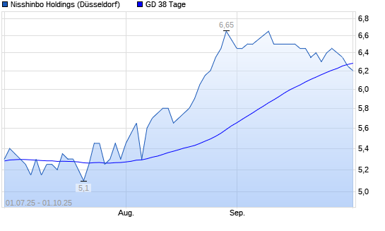 Mit dem Rücksetzer auf 6,35 EUR hat die Nisshinbo Holdings-Aktie am 30.09.2025 die 38-Tage-Linie nach unten gekreuzt.Die Nisshinbo Holdings-Aktie befindet sich seit dem 23.07.2025 im langfristigen ...weiterlesen