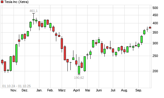 Mit dem Anstieg auf 378,00 EUR hat die Tesla-Aktie (ISIN US88160R1014) am 30.09.2025 ein neues 6-Monats-Hoch erreicht und damit den Kurs vom 24.09.2025 eingestellt.Die Tesla-Aktie befindet sich ...weiterlesen