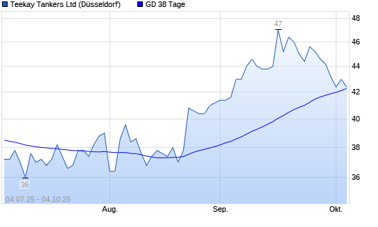Mit dem Rücksetzer auf 41,80 EUR hat die Teekay Tankers-Aktie am 03.10.2025 die 38-Tage-Linie nach unten gekreuzt.Die Teekay Tankers-Aktie befindet sich seit dem 21.08.2025 im langfristigen ...weiterlesen