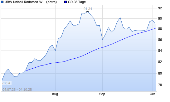 Mit dem Rücksetzer auf 88,30 EUR hat die Unibail-Rodamco-Westfield-Aktie am 03.10.2025 die 38-Tage-Linie nach unten gekreuzt.Die Unibail-Rodamco-Westfield-Aktie befindet sich seit dem 12.05.2025 ...weiterlesen
